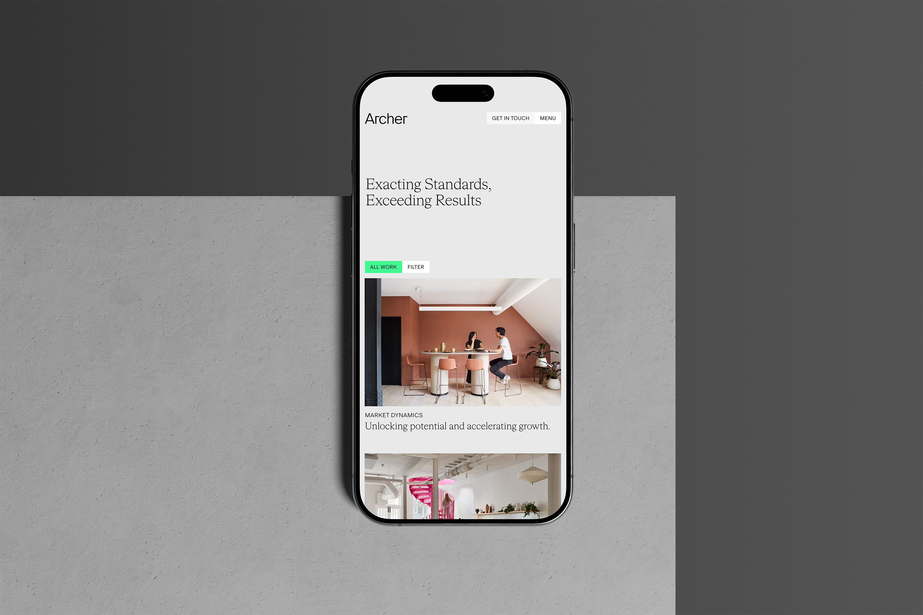 Working with Archer we helped define their brand identity around the core principles of a precision-focused, hands-on approach. The result is a meticulously applied and endlessly adaptable structural brand system inspired by architectural forms.